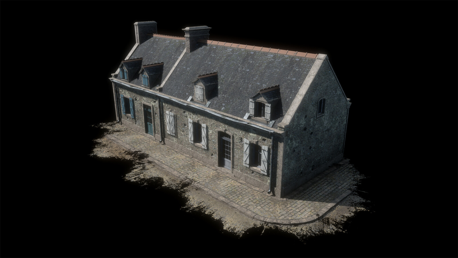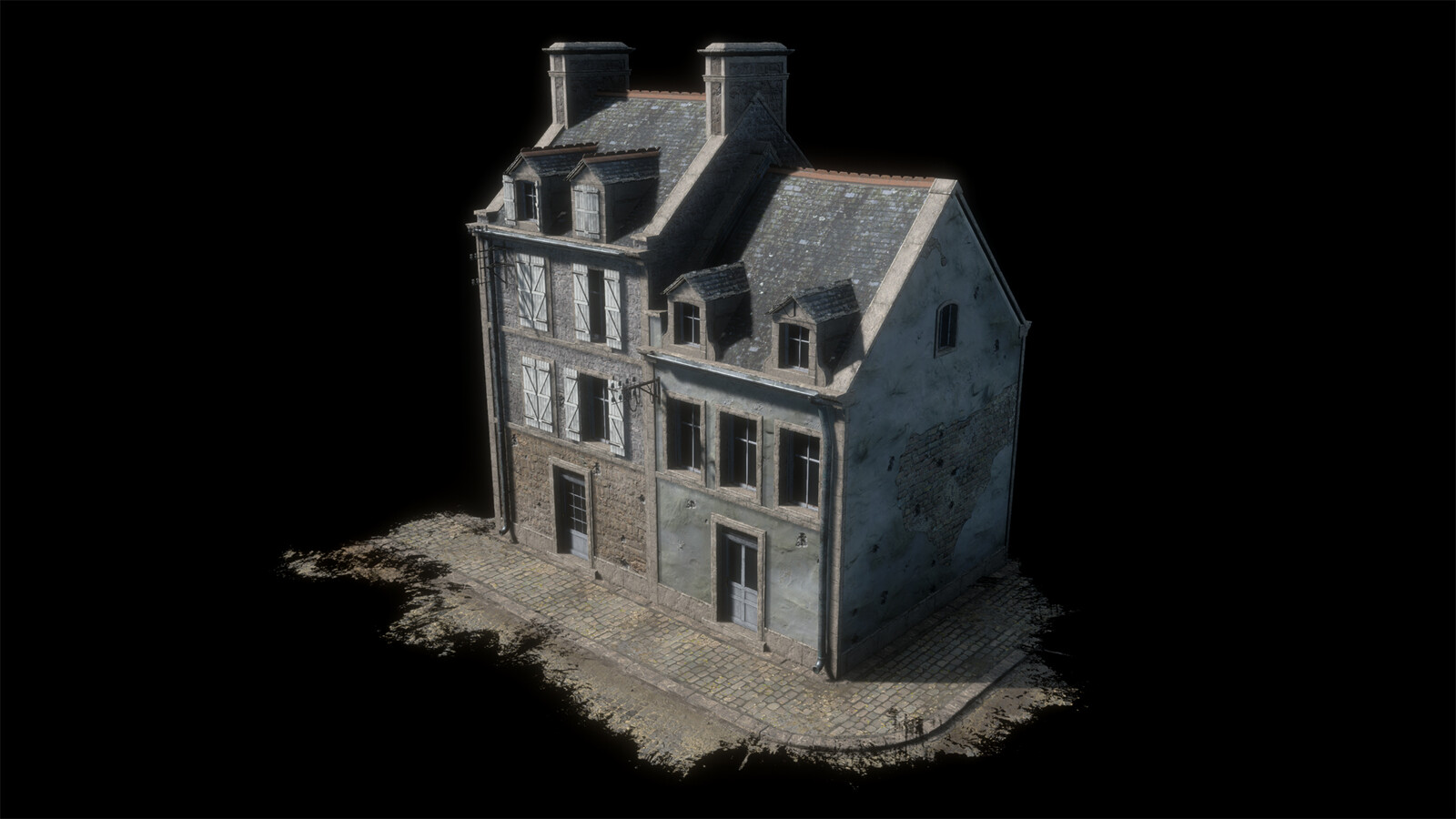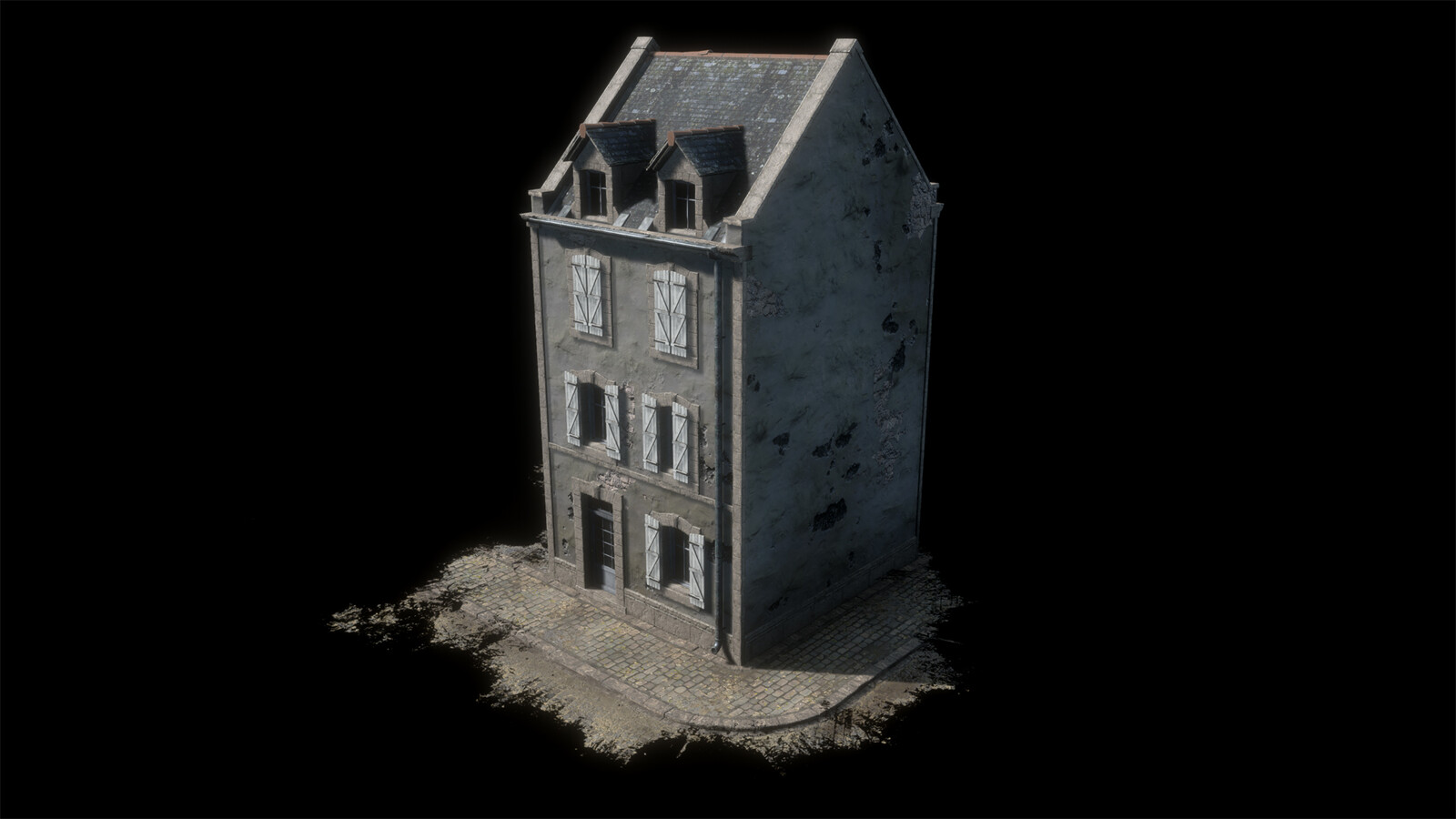 This is a selection of the town buildings I made for Hell Let Loose. My responsibilities were modeling and dressing, and I also developed several flexible materials that gave us a lot of options for controlled variation, with scalable and non-repetitive features such as edge wear, grunge, plaster damage, bullet, and splash damage.