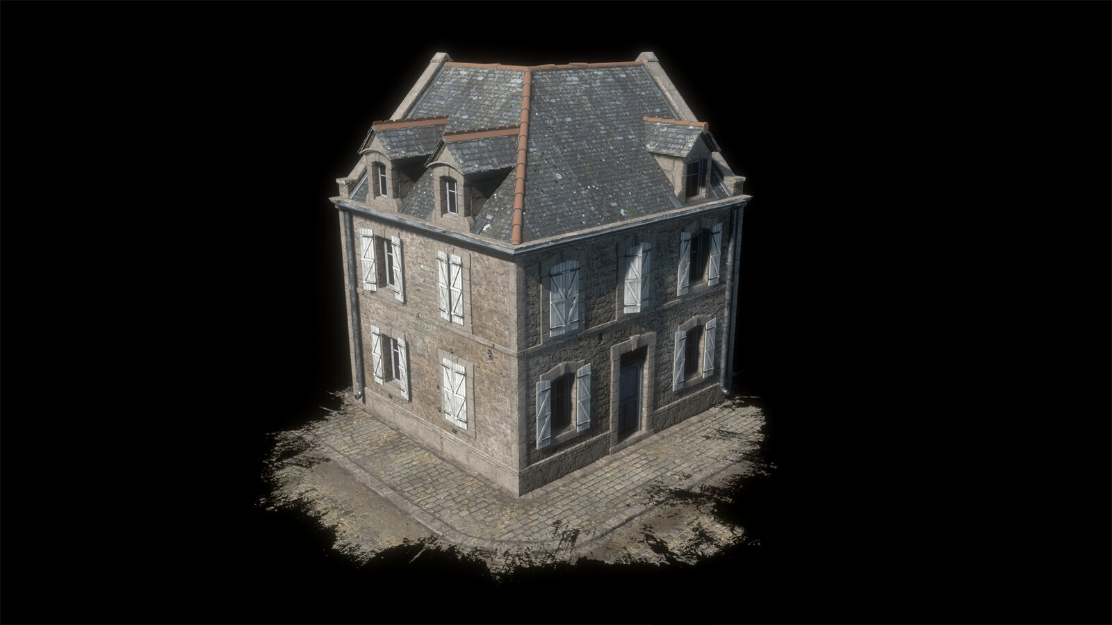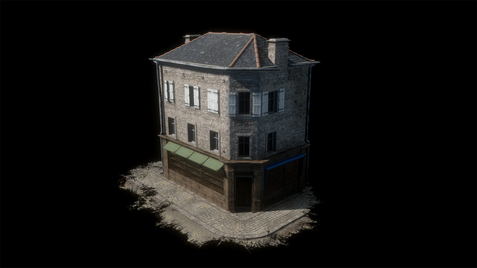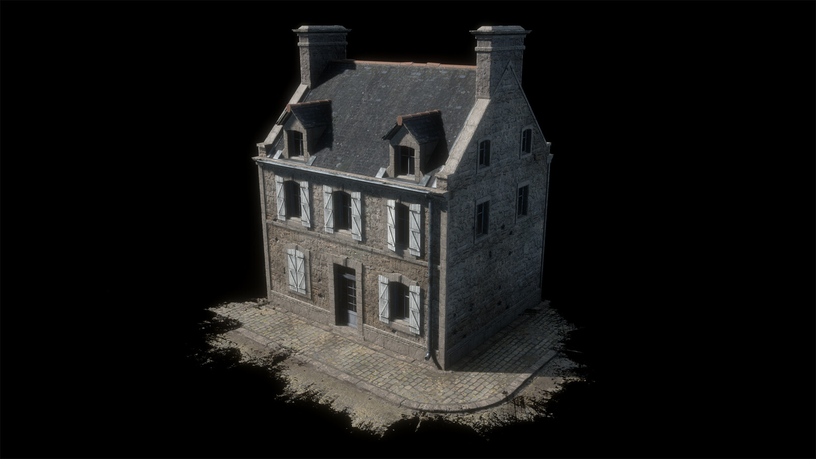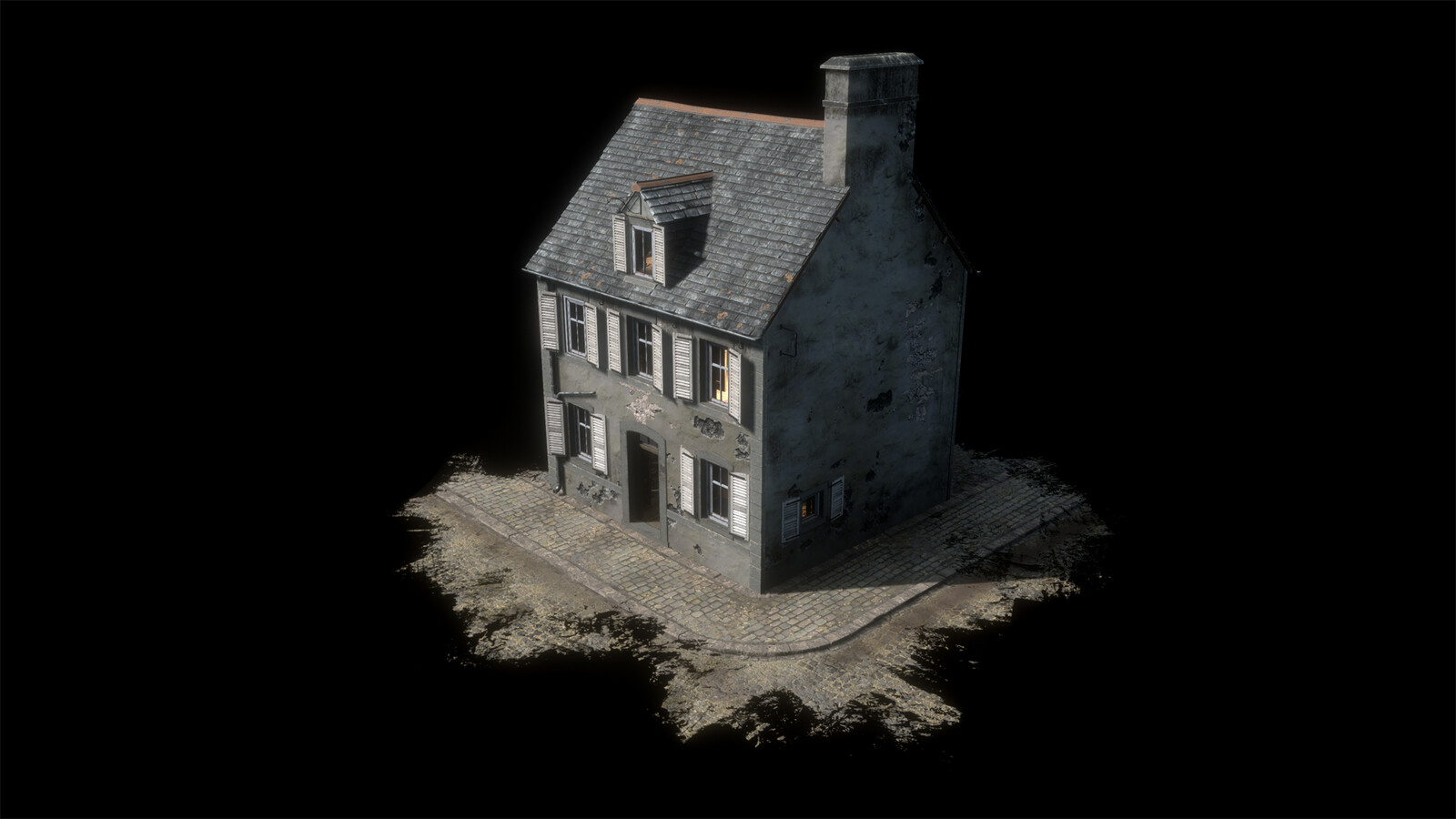 This is a selection of the town buildings I made for Hell Let Loose. My responsibilities were modeling and dressing, and I also developed several flexible materials that gave us a lot of options for controlled variation, with scalable and non-repetitive features such as edge wear, grunge, plaster damage, bullet, and splash damage.