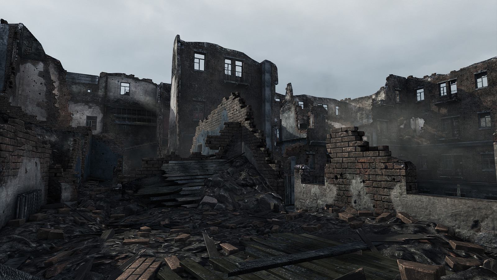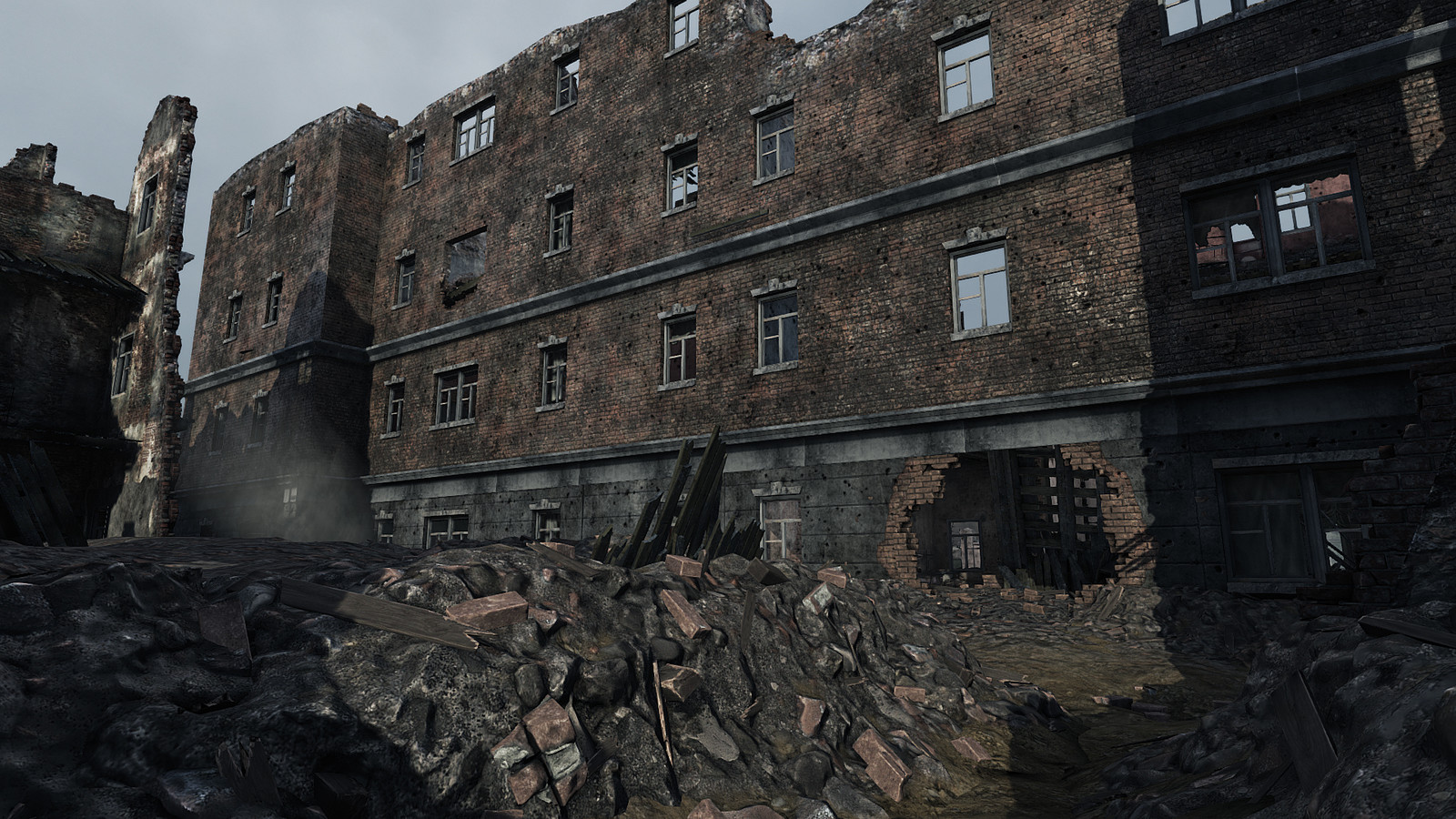 - Modelling and texturing all of the buildings and new props, which included a rubble and destruction kit