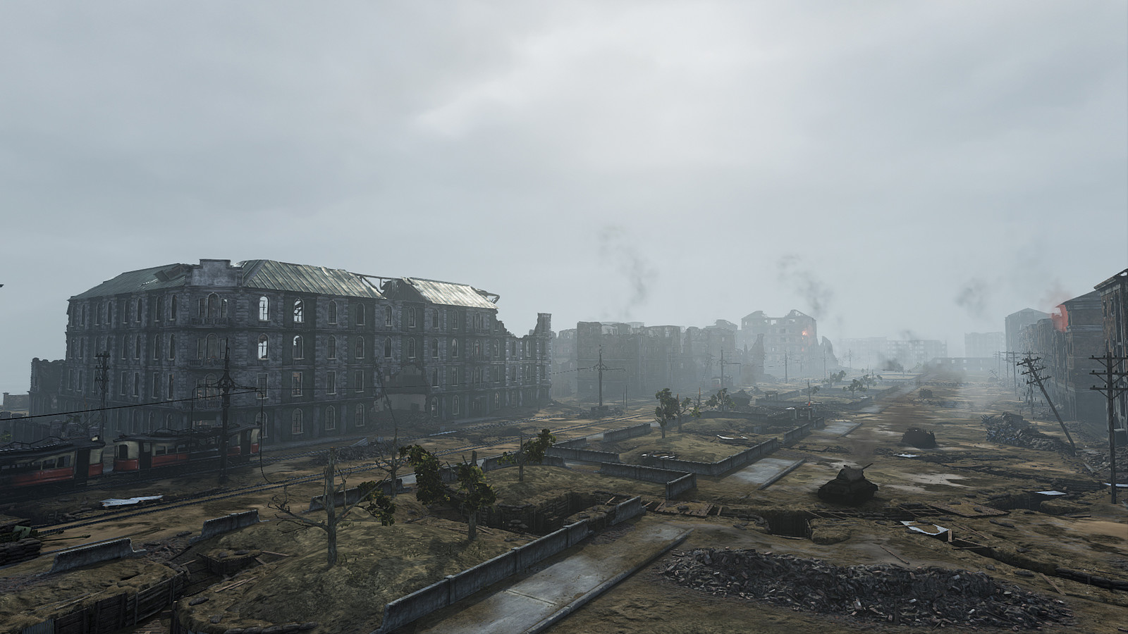 Volga Banks was made in close collaboration with Elliot Burgess using Red Orchestra 2 as a platform. The map is set during the Battle of Stalingrad before the onset of winter, where the Red Army was desperately clinging on to a thin slither of land on the banks of the Volga River. We crafted a war ravaged city with intricate detail, interesting combat spaces and paths winding through trenches connecting basements and buildings. The environment was tailored to the type of gameplay experience we wanted, dozens of huge unique buildings complete with interiors were made to achieve this.